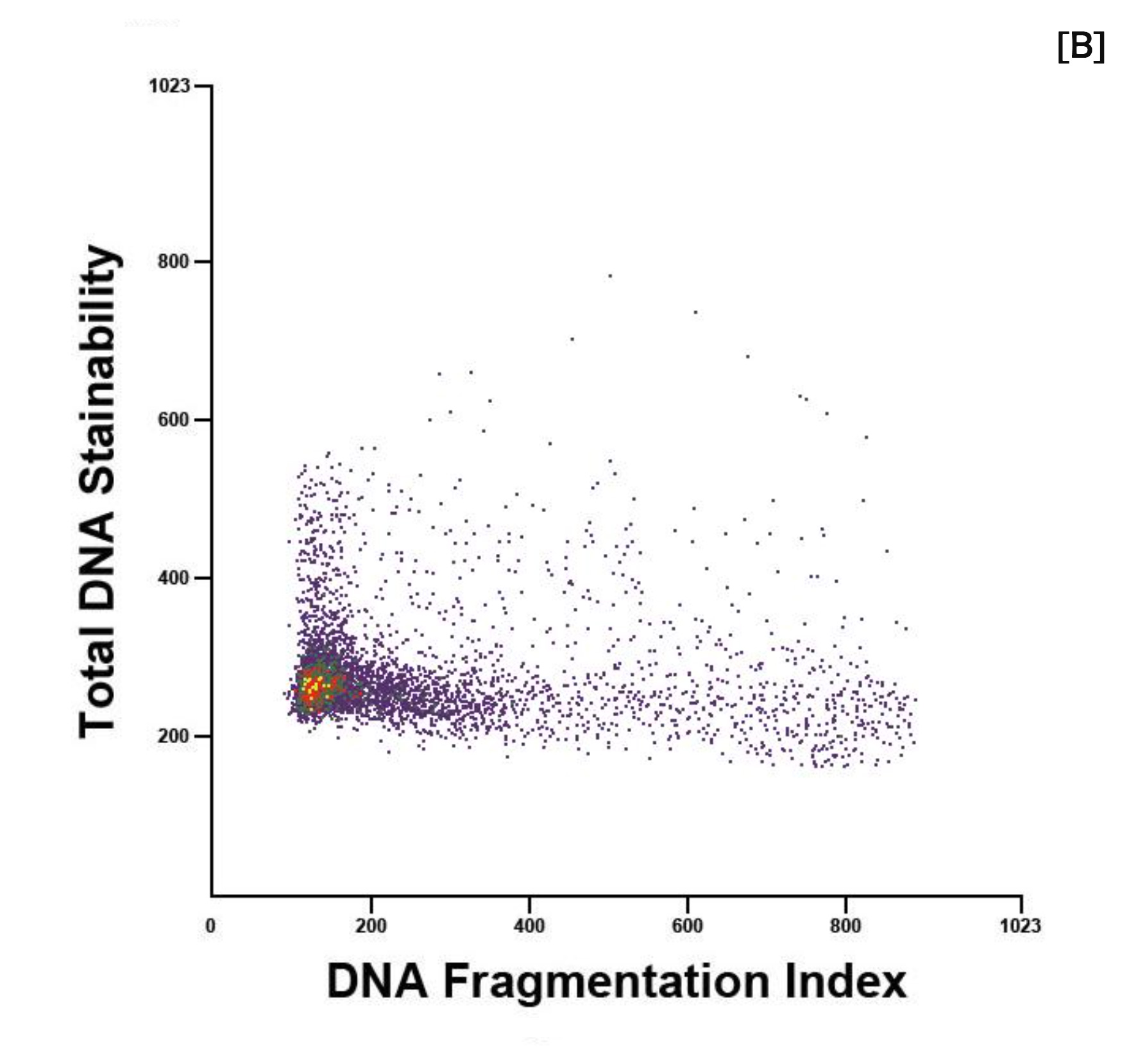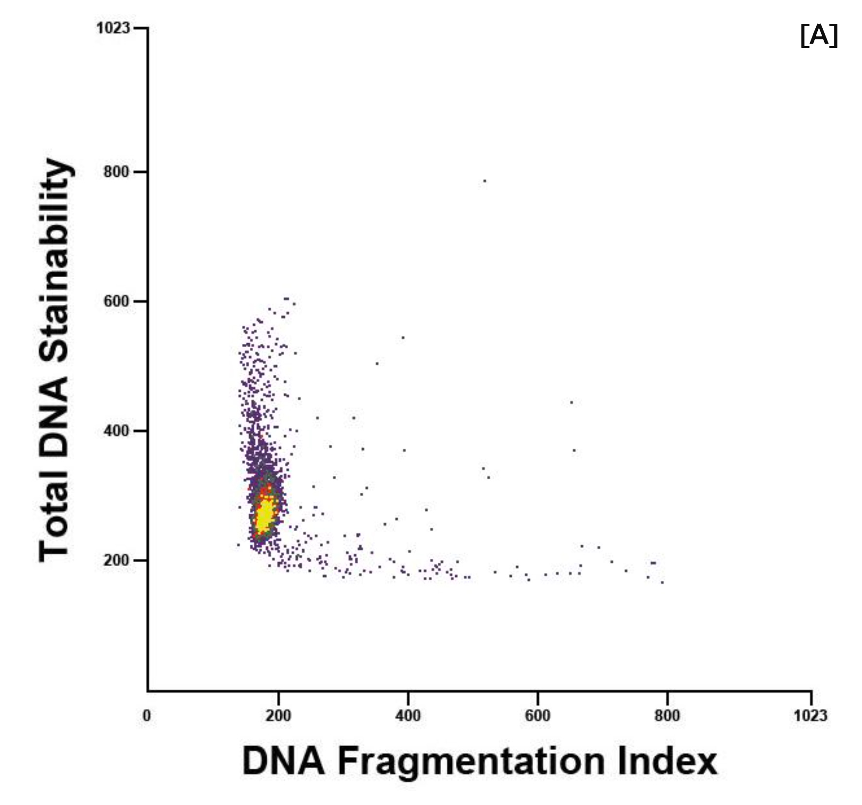 …that studies show that couples with a DFI in the normal range (stable , barely fragmented DNA). Achieving a successful pregnancy is more likely through IVF/ICSI.