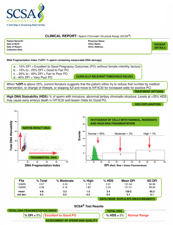 Se o Índice de fragmentação do DNA e as Células de alta coloração de DNA estão dentro da faixa normal, a gravidez é possível naturalmente ou por inseminação (ignorando fatores do parceiro que afetam a fertilidade).