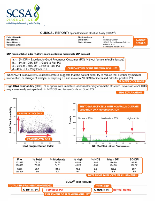 Os autores concluíram que "o Índice de fragmentação do DNA é um preditor da probabilidade de concepção natural, mesmo quando os parâmetros seminais clássicos estão dentro da faixa normal. A análise SCSA complementa o planejamento do tratamento para casais com infertilidade comprovada".