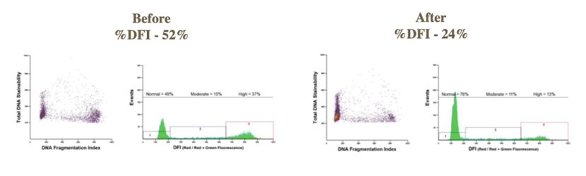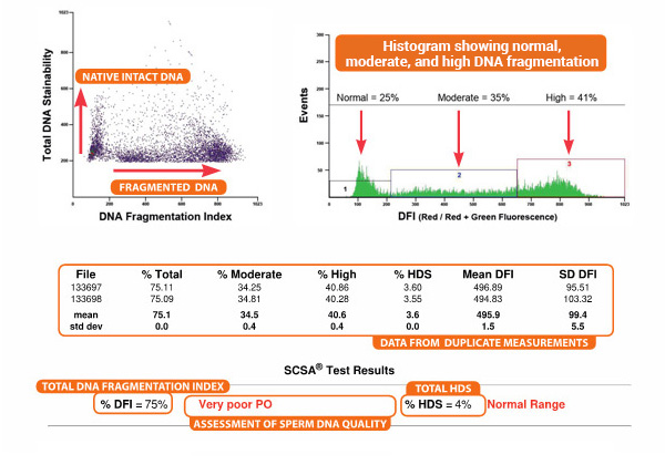 Furthermore, the finding shows a graphical representation of the %DFI (DNA Fragmentation Index) and the %HDS (high DNA stainability)