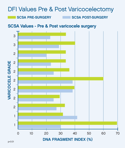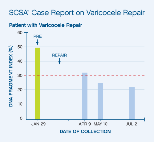 Below is an example of a patient where there was decrease in the sperm DNA fragmentation after varicocele repair:
